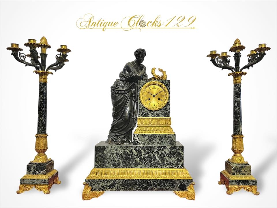 • Chất liệu: Đá xanh của biển (Vert de Mer) kết hợp đồng mạ vàng + tượng đồng patinated